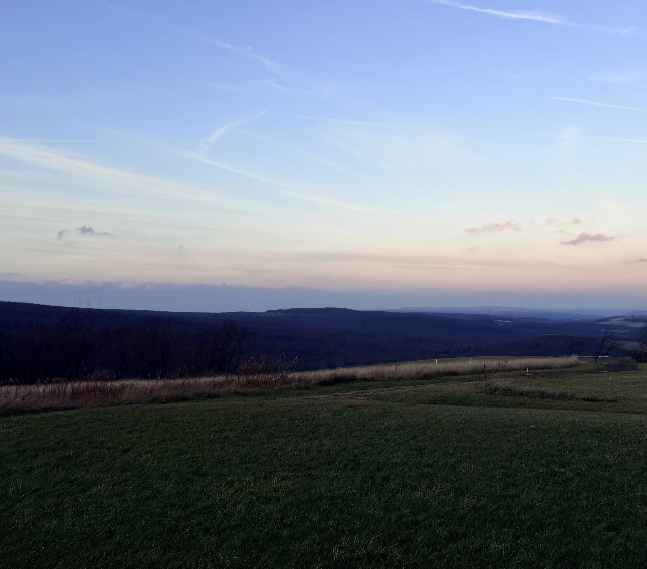 as evening drifts in over the hills.